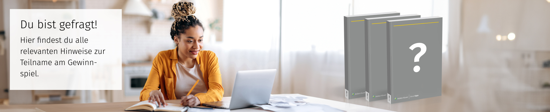 Veranstalter des Gewinnspiels ist Wolters Kluwer Steuertipps GmbH, Havellandstraße 14/14a, 68309 Mannheim